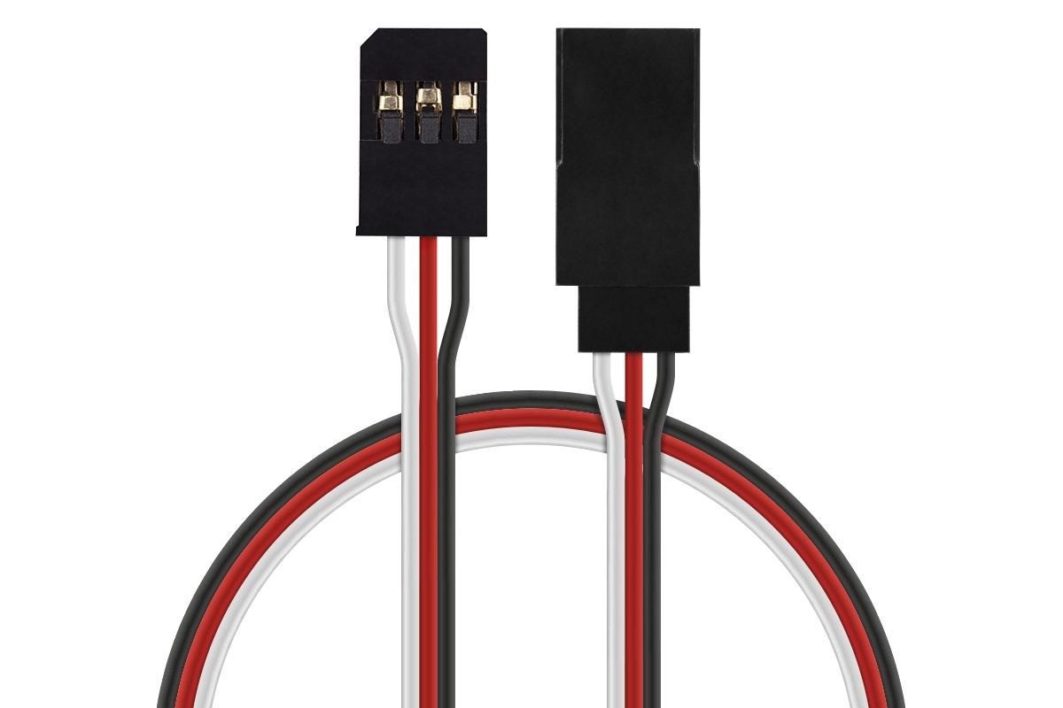 Plochý prodlužovací kabel s konektory Futaba o délce 300 mm s PVC izolací, průřez vodičů 0,33mm2 / 22AWG.
