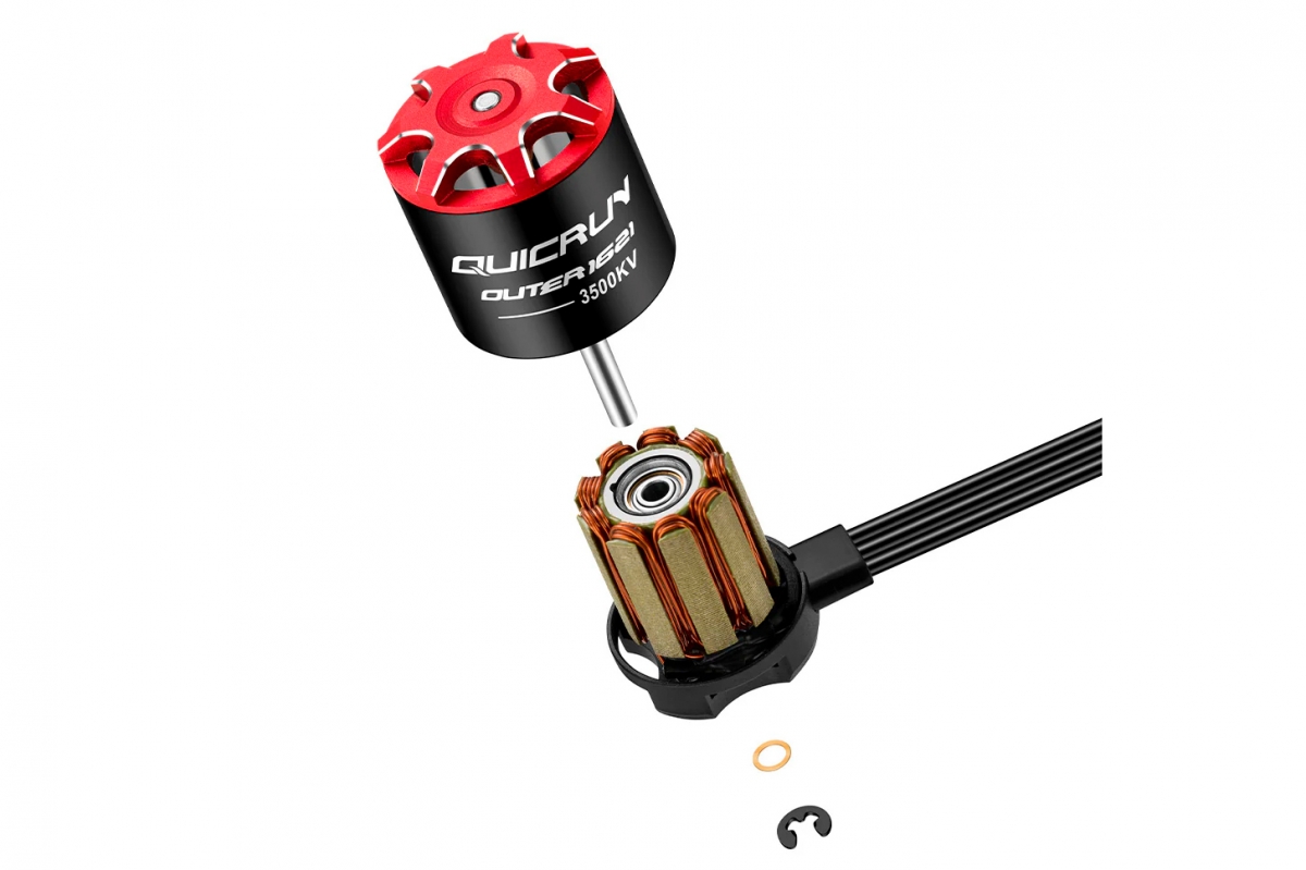 Výkoný střídavý bezsenzorový dvanáctipólový motor s rotačním pláštěm řady QuicRun, výborná náhrada stejnosměrného motoru s mnohem vyšším výkonem a účinností v RC crawlerech 1/24. Napájení 2-3S LiPo, KV3500 ot./min na V. Ideální s regulátorem Quicrun WP Mini 24.