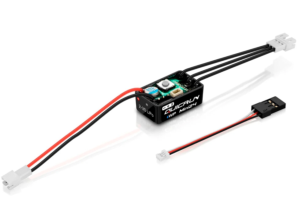 Regulátor QUICRUN WP Mini 24 25A 25A nabízí vše, co potřebujete pro plné využití potenciálu vašeho terénního RC miniauta 1:24 nebo 1:18 se střídavým motorem bez senzorů („sensorless“) nebo klasickým stejnosměrným motorem - zvláště vhodný je pro RC crawlery. Nabízí širokou škálu 13 programovatelných parametrů pro dokonalé přizpůsobení motoru, podvozku a trati. Takže, pokud berete ježdění s vaším „prckem“ se střídavým nebo i stejnosměrným motorem vážně, vodotěsný regulátor QUICRUN WP Mini 24 25A od Hobbywingu je pro vás to pravé!