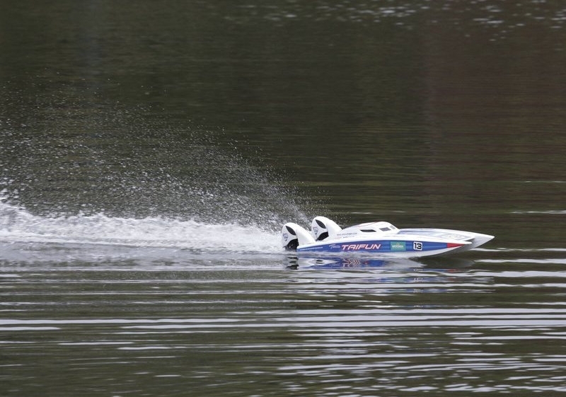 Nová závodní kočka s názvem Typhoon je čistokrevným závodním katamaránem se dvěma přívěsnými speciálními třídami. Motory Graupner Inline Brushless Motors ji urychlují na maximální rychlost vyšší než 70 km / h. Jako zdroj napájení je k dispozici 2x 3S Lipo.
