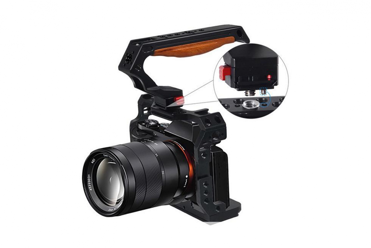Aluminum Alloy, RosewoodWeight: 160gSize: 149 x 73 x 33mmWith 1/4inch / 3/8inch screw holes and cold shoe