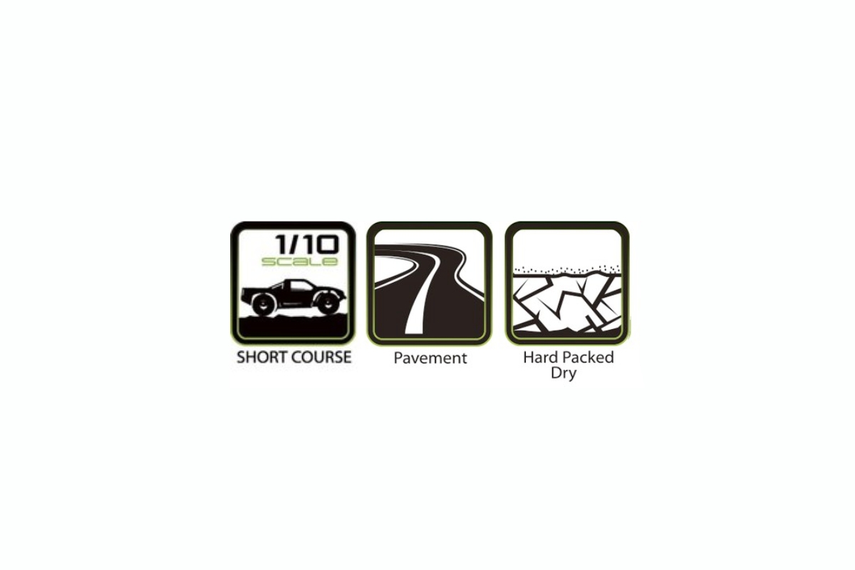 Kompletní kola pro short course trucky 1/10 se sadou vyměnitelných hexů o různých rozměrech a offsetech. Pneumatiky vhodné na tvrdé povrchy.