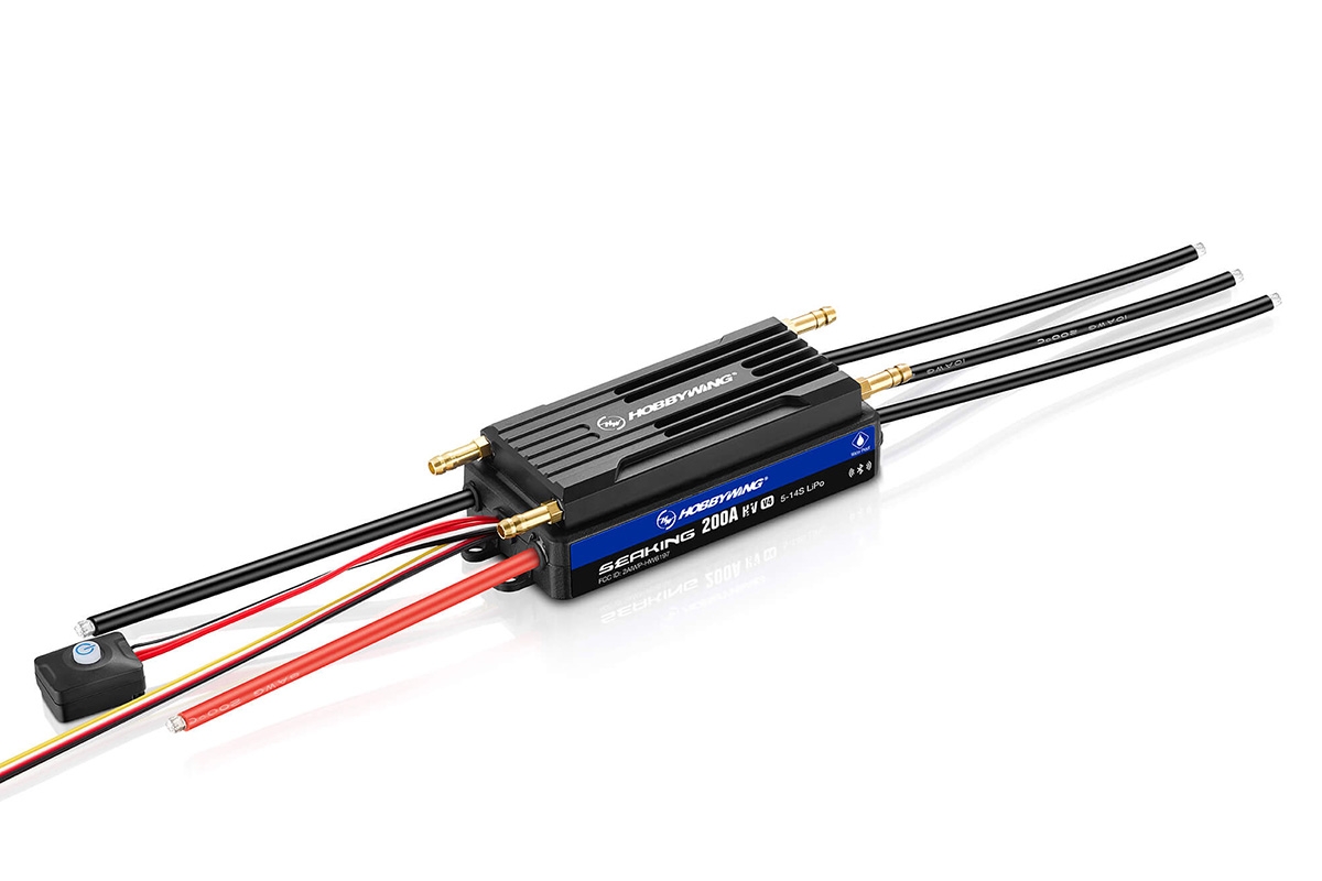 Obousměrný regulátor firmy Hobbywing speciálně určený pro modely lodí. Ideální pro rychlostní čluny do délky 1400mm a velké makety. Trvalý proud 200A, špičkový 1000A. Spínaný BEC 6,0/7,4/8,4V 8A. Napájení 5-14S LiPo. Hmotnost 386g. Rozměry 106x51x31mm. Vodotěsný a vodou chlazený. Vestavěný Bluetooth pro snadné programování v mobilní aplikaci HW Link.