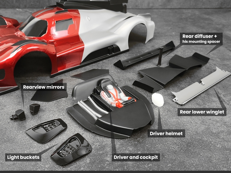 Sada dodává karoserii skutečně ohromující úroveň realismu a je „nutností“ pro všechny nadšence, kteří jsou posedlí estetickou dokonalostí svého modelu; zatímco karoserie 499T již představuje vynikající úroveň věrnosti skutečnému hyperautu, tato estetická sada posouvá karoserii na zcela novou úroveň.