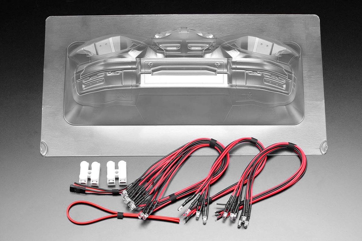 Set lexanových parabol, držáků a LED diod (8 bílých, 6 červených a 4 oranžové).