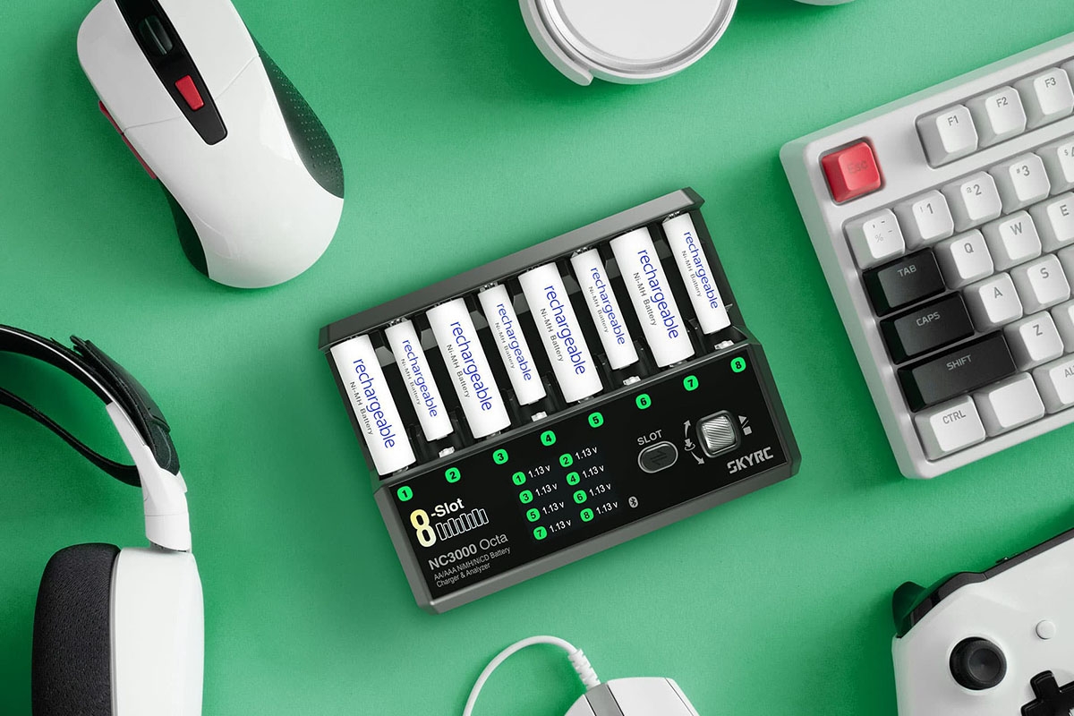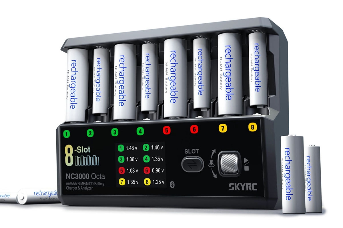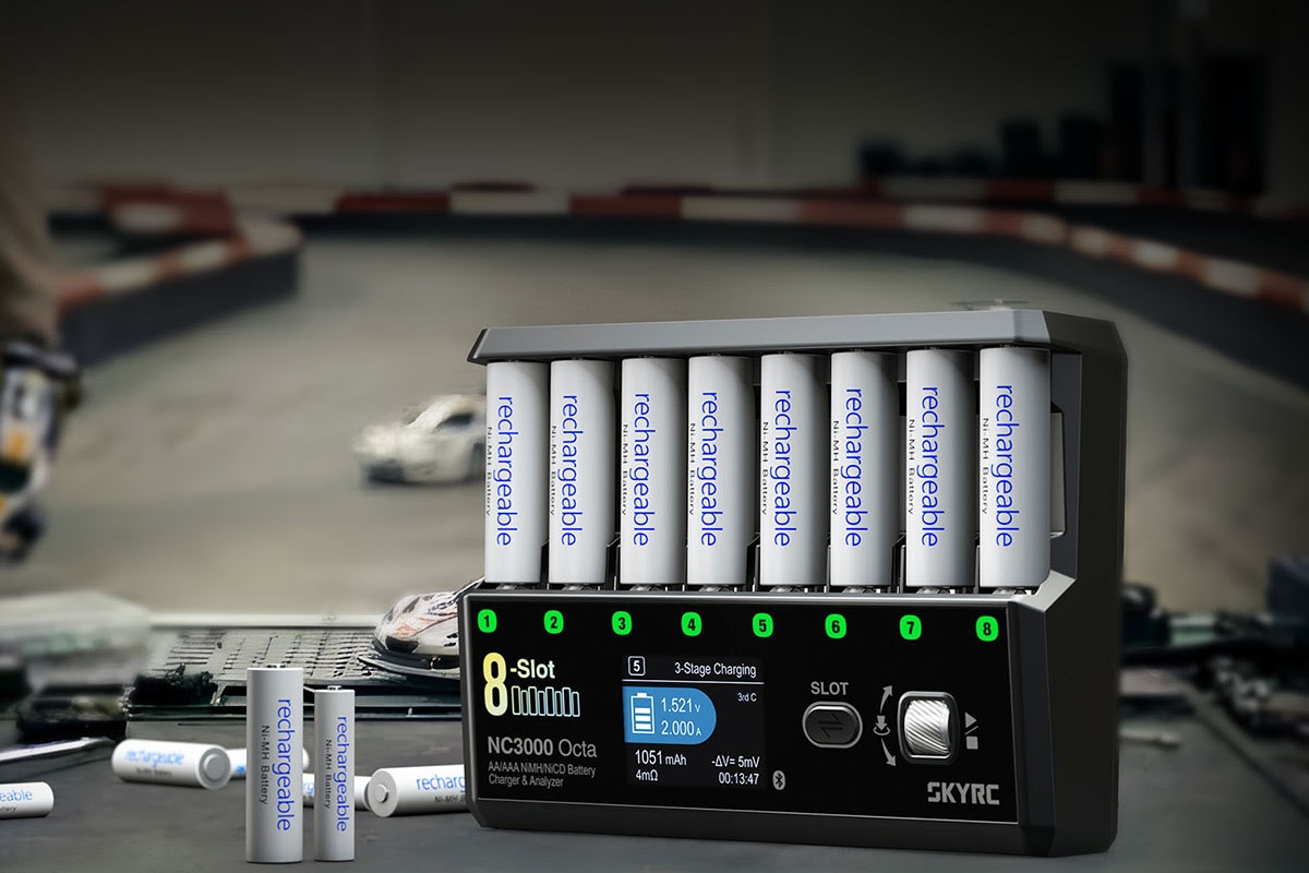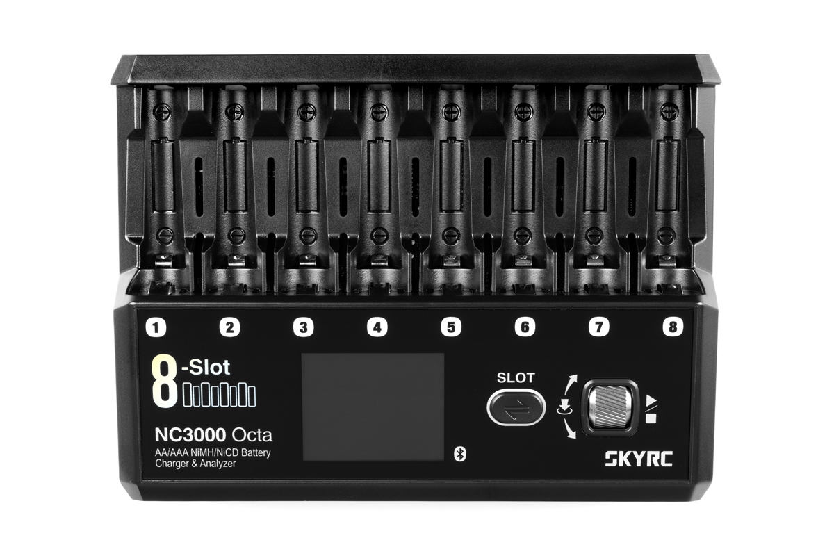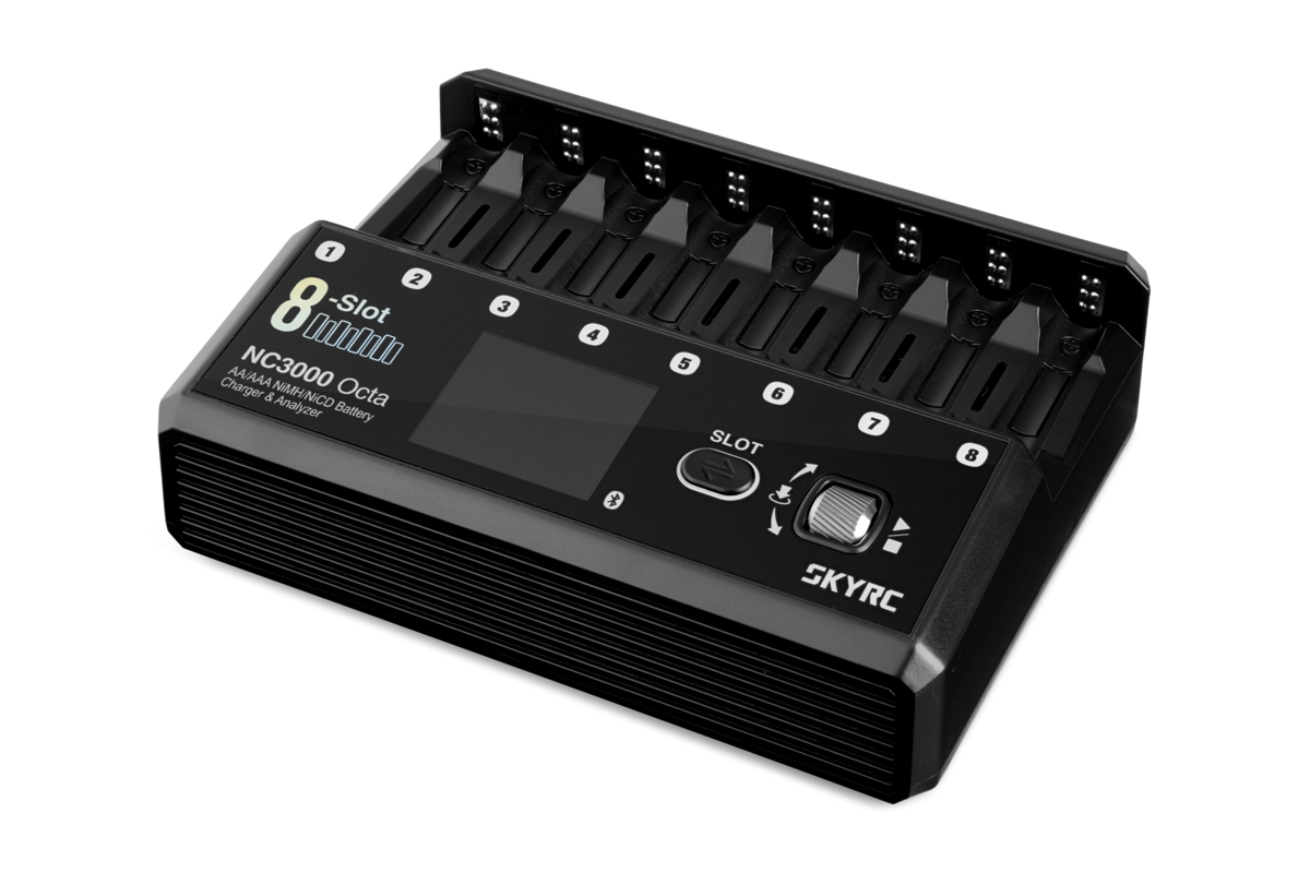 NC3000 Octa umožňuje současně – a přitom nezávisle - nabíjet nebo vybíjet až osm různých tužkových nebo mikrotužkových akumulátorů. Pokud nabíjíte osm stejných akumulátorů, stačí parametry nastavit pro jeden kanál a potom jedním stiskem tlačítka zvolit simultánní nabíjení se stejnými parametry ve všech kanálech. Parametry probíhajícího procesu (nabíjecí/vybíjecí proud, nabitý/vybitý náboj, napětí akumulátoru, vnitřní odpor) jsou průběžně zobrazovány pro všechny kanály na LCD displeji.