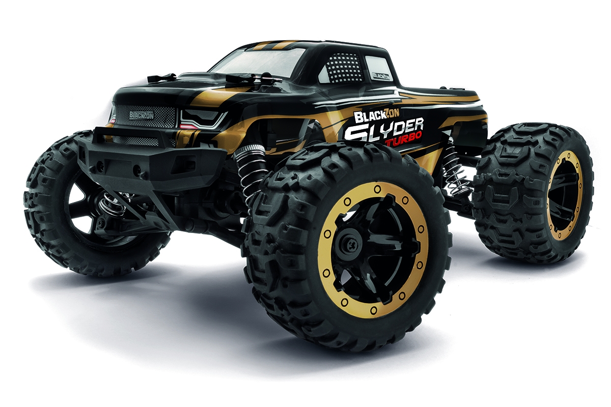Šestnáctinový RC monster truck je sice malý rozměry, ale velký možnostmi. Tento vůz s pohonem všech 4 kol je připraven čelit skokům a nárazům, a nezaostává ani při nejrůznější akrobacii. Díky 4x4 pohonu, rovnoběžníkovému zavěšení a stavitelným tlumičům zdolá nástrahy každého terénu, a díky krytým převodům a voděodolné elektronice se nezalekne ani kaluží, bláta nebo prachu. Nejen že v zelenočerném kabátku vypadá úžasně, ale doplněn o LED světlomety, je Slyder připraven i k jízdě za zhoršených světelných podmínek nebo v noci. LED světla jsou přibalena k modelu, a podle preferencí jezdce je lze umístit kamkoliv, a poté pouze připojit konektor k akumulátoru.