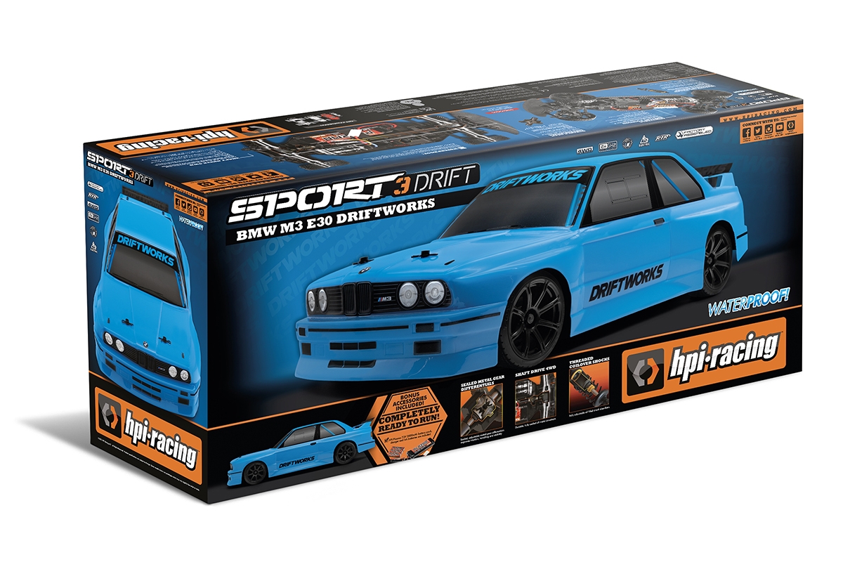 Kompletně sestavený driftovací speciál v měřítku 1:10 s karosérií BMW E30. Model je poháněný výkonným stejnosměrným motorem, dodávaný v setu včetně RC soupravy 2,4 Ghz a pohonné baterie.