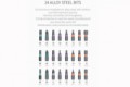 Sada obsahuje černé šroubováky s karbonovou rukojetí velikosti 1.5, 2.0, 3.0mm hex (imbus) a 5.5, 7.0mm nut (nástrčkové) a hliníkový stojánek pro 6 ks šroubováků, 4 ks bitů elektrického šroubováku a mobilní telefon. Včetně přihrádek pro odkládání dílů, měrky šroubků a děr pro pájení konektorů XT60 a 2, 3,5, 4 a 5mm bullet.