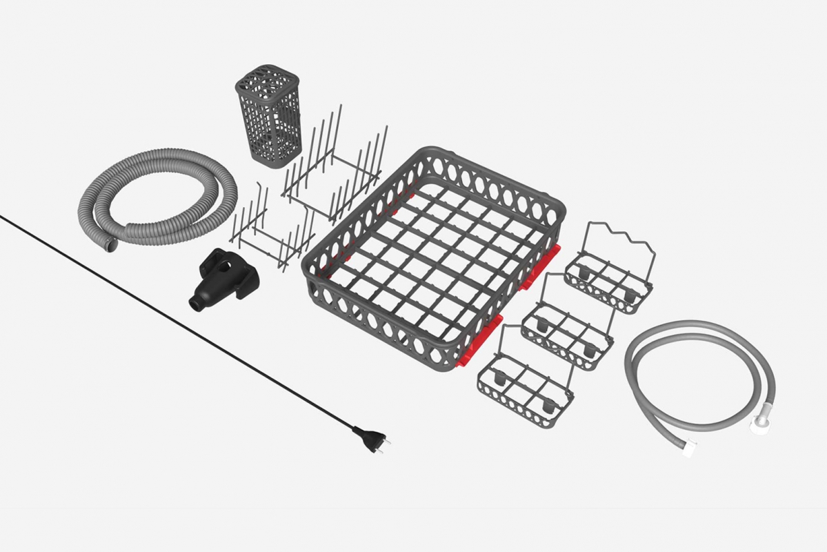 Ta se plní zepředu, myčku lze tedy umístit i například pod skříňku.