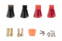 Zlacené 7mm konektory s domkem pro 8,4mm2 (8AWG) kabel. Konstantní proud 280A, špičkový 320A. Max 60V DC. Nepájecí varianta - kabel je zajištěn pomocí dvou imbusových červíků. Balení 2 páry. Kompatibilní s Anti-spark S6 7808 ASST (REB7808ASSTS7P2).