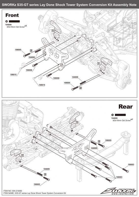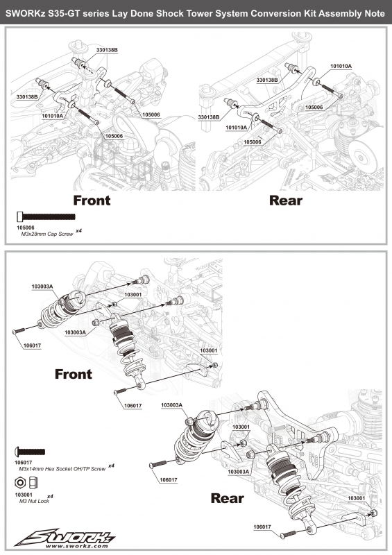 SWORKz GT uhlíkové přední a zadní parohy/držáky tlumičů, 1 sada