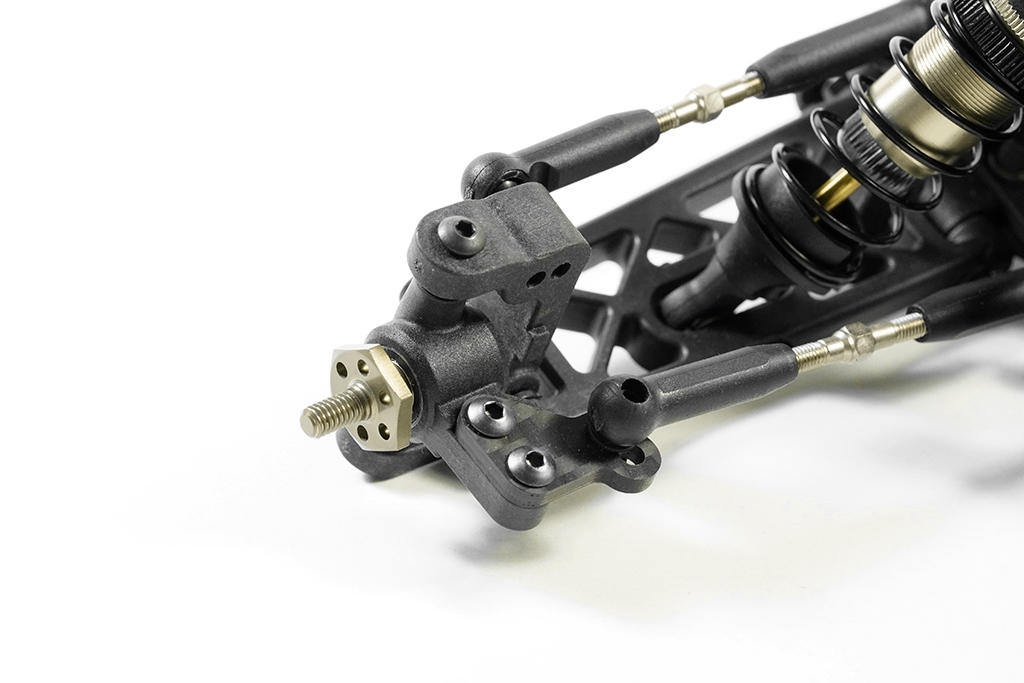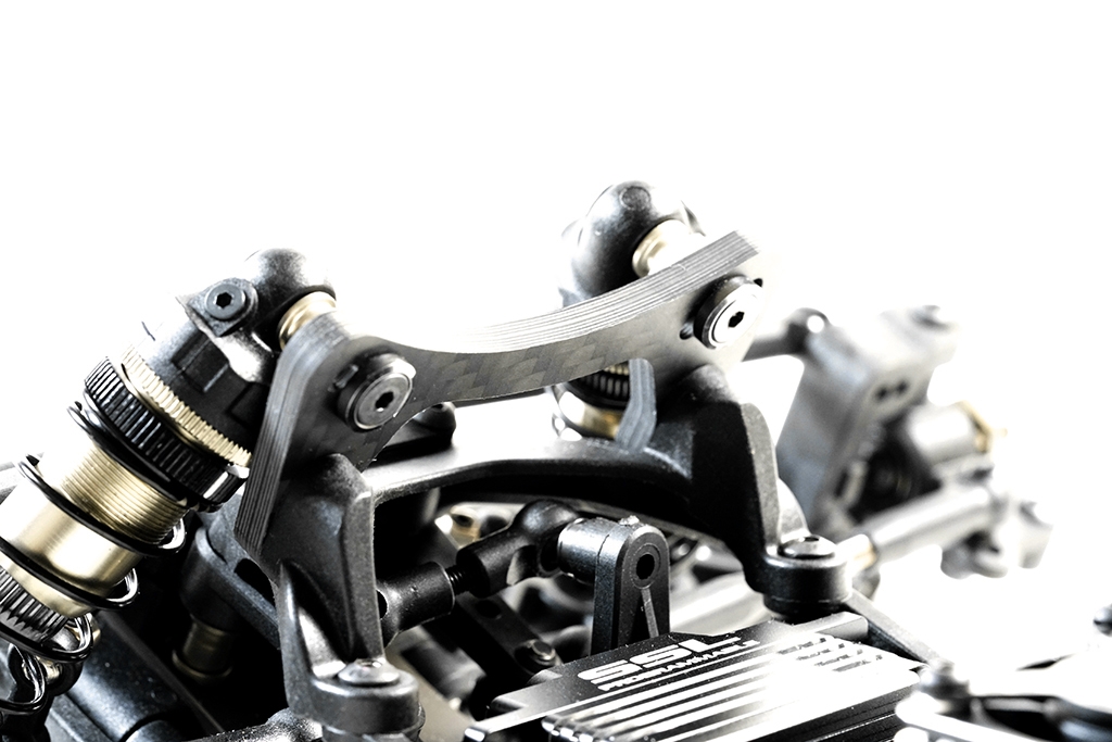 Součástí sady S12-2D EVO LIMITED je zcela nový 5,5mm systém kulových čepů. Součástí je také nastavitelná Ackermann deska a karbonové desky řízení. S12-2D EVO LIMITED má nová zakřivená spodní ramena, která zajišťují nižší polohu tlumičů, což vede ke snížení těžiště.