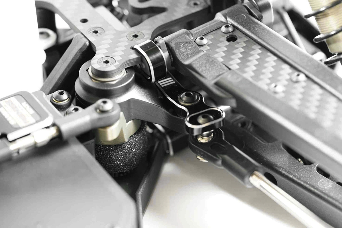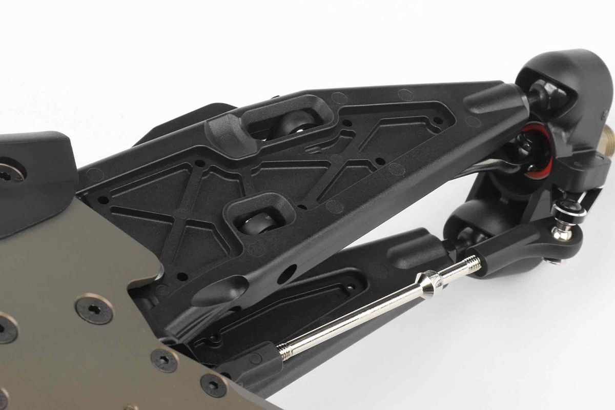 With the new toe-in plates, which now contain square inserts, you can adjust the geometry of your SWORKz S35-T2 to fit every track layout and track condition. The lower arms are made of a newly developed composite material and fit perfectly to the new chassis. Side guards were redesigned as well. With the new lightened wing support you can adjust various positions and the angle of the wing to give your SWORKz S35-T2 the best stability on the track. Together with the “Speed Rhinoceros III” body shell, perfect aerodynamics is achieved.