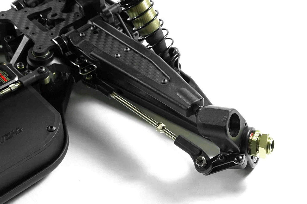The newly developed Truggy HET differentials are included and provide traction that was not possible before. The new S35-T2 comes with a longer shock layout in the front and rear. The construction of the shocks is adapted to that new optimized layout. The smart holder for shock spring plates makes it almost impossible to lose them anymore. The steering geometry, with new Ackerman and steering plates, gives the driver a feeling of total control over the SWORKz S35-T2.