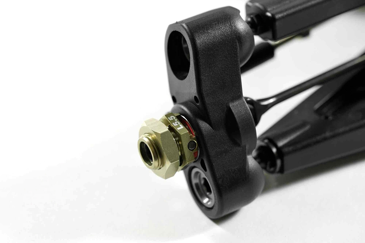 Another new development in our SWORKz S35-T2 is the totally new rear hub. Made from composite materials combined with 2 carbon plates gives you the possibility for various setups.