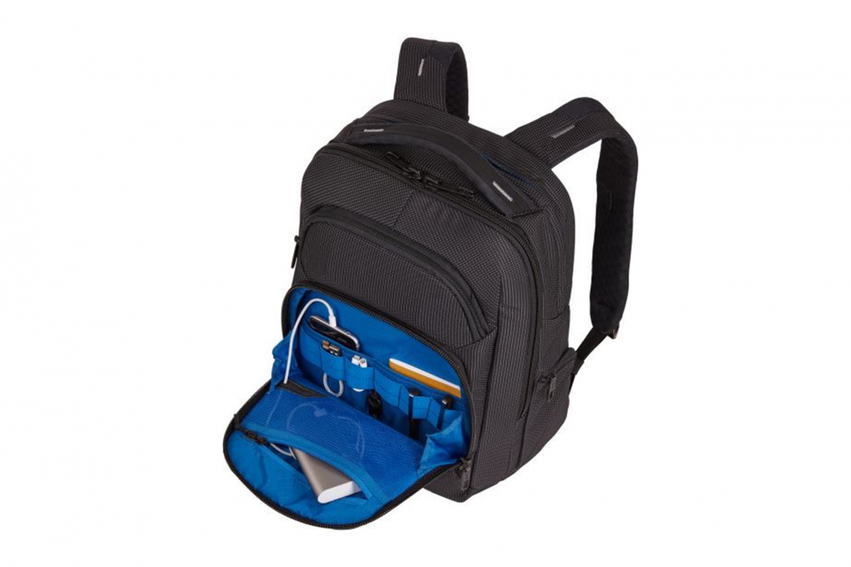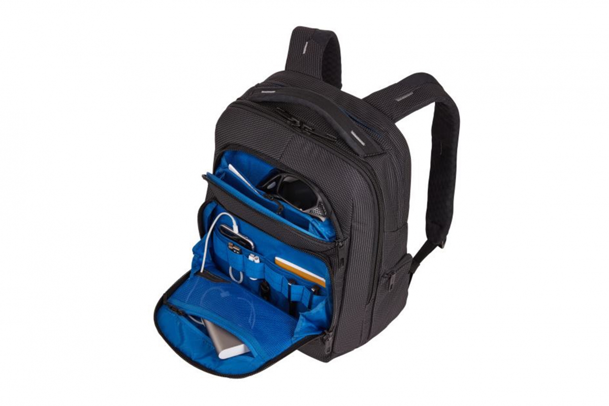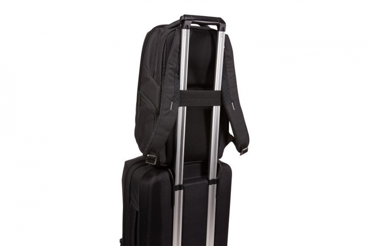 Přehledné uložení drobnějších předmětů v patentovaném ochranném oddílu SafeZone odolném proti nárazům, který je vybaven kapsou na zip a který zaručuje jejich ochranu a snadnou přístupnost. Vyhrazená polstrovaná přihrádka s patentovanou konstrukcí SafeEdge k uložení a ochraně 14" notebooku. Uspořádejte malou elektroniku a příslušenství v předním panelu s kapsami, elastickými poutky, kapsou na zip a systémem vedení kabelů PowerPocket pro nabíjení na cestách. Samostatná kapsa s měkkou výstelkou k uložení 10,1" tabletu. Hlavní oddíl je vybaven síťovou kapsou na zip a velkou kapsou umožňující oddělit různé věci. Všité boční kapsy na zip k uložení lahve s vodou nebo deštníku. Kapsa s RFID stíněním ochrání vaši identitu a osobní údaje na bezkontaktních kartách. Bezpečné zavěšení batohu na zavazadlo na kolečkách pomocí integrovaného pásu s otvorem. Odolná konstrukce s vyvýšenými lištami zvyšuje ochranu lehkého materiálu a jeho odolnost vůči opotřebení.