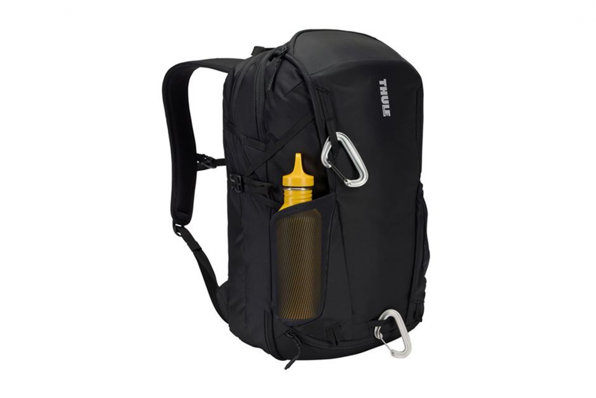 Vnější boční kapsy z roztažné síťoviny umožňují rychlé uložení láhve s pitím, powerbanky nebo deštníku.