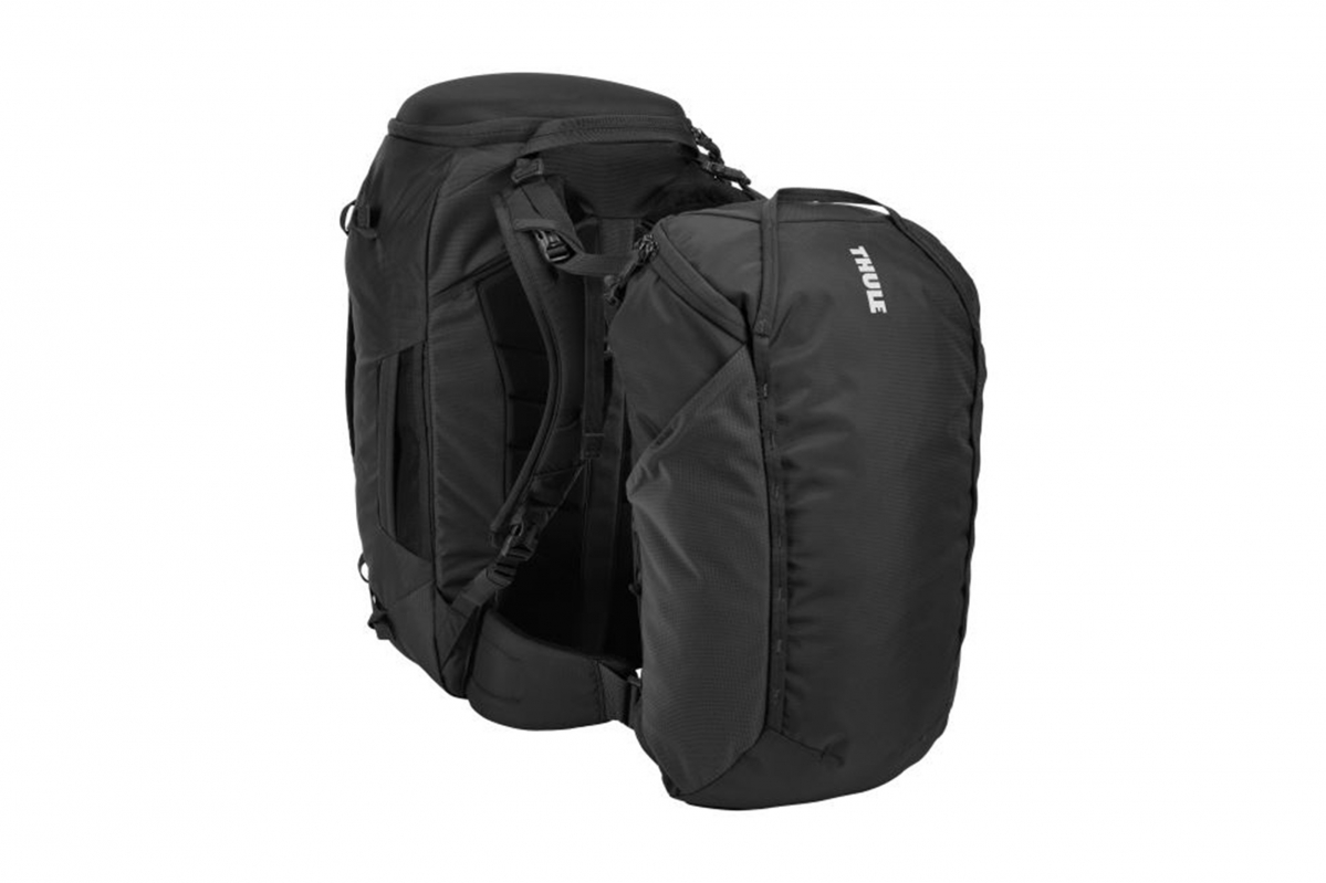 Do přihrádky SafeZone lze uložit telefon, sluneční brýle, kabely a malé cennosti. V přihrádce CashStash, skryté pod přihrádkou SafeZone, je možné uchovávat peníze a pas, a ochránit je tak před kapesními zloději. Podnikejte jednodenní výlety s odnímatelným doplňkovým batohem o objemu 20 l s místem pro uložení notebooku či MacBooku o velikosti 15", prodyšným zadním panelem a krytou kapsou CashStash na peníze a osobní věci. Užijte si volné ruce a vyvážené a bezpečné nošení díky připevnění doplňkového batohu na přední stranu ramenních popruhů. Nejsou-li používány tvarované ramenní popruhy a bederní pás, je možné je skrýt, a předejít tak jejich opotřebení. Inovativní uzávěry LoopLock zabraňují krádeži zajištěním jezdců zipu k batohu. Dvojité jezdce zipu lze také uzamknout (zámky TSA s číselným kódem jsou prodávány samostatně). Osobní věci je možné bezpečně uschovat a uspořádat pomocí vnitřních stahovacích pásků a síťovaných kapes. Boční kapsa se zipem umožňuje bezpečné uložení láhve s vodou a dalších malých předmětů. Je navržen tak, aby mohl být používán jako příruční zavazadlo při sejmutí odnímatelného doplňkového batohu a nošen jako samostatné zavazadlo. Pro vyšší bezpečnost při výletech je možné snadno přesunout píšťalku integrovanou do hrudního popruhu z hlavního batohu do doplňkového batohu.