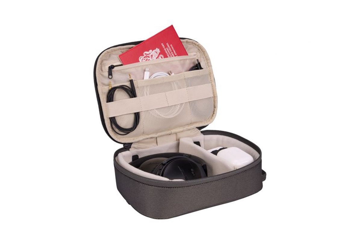 Pouzdro Thule Subterra Powershuttle Plus poskytuje promyšlený úložný prostor pro nabíječky, kabely, drobnou elektroniku, psací potřeby a další předměty.