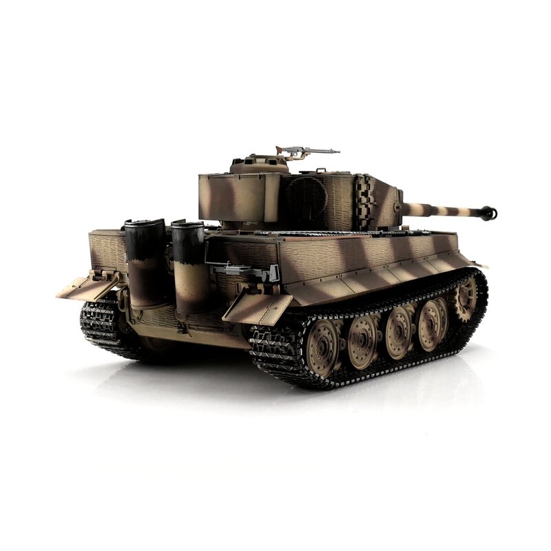 Výkonný model tanku má RC ovládání 2,4 GHz. Vozidlo je vybaveno IR bitevním systémem, takže jsou možné bitvy s vozidly ze stejné série. Motory s optimalizovaným točivým momentem dodávají modelu Tiger I pozdní verze přesnou a plynulou jízdu. Kovové převody s robustními převody a vylepšeným převodem zajišťují větší výkon. Díky proporcionálnímu ovládání se můžete s tankem přiblížit velmi pomalu a plynule zvyšovat rychlost. Tiger I pozdní verze se pohybuje dopředu a dozadu, také s otočením doleva a doprava. Lze jej také na místě otočit doleva nebo doprava. Můžete zvednout a spustit dělo a otočit věž o 360 stupňů. Realistický zážitek završují různé zvuky motoru, zpětný zákluz hlavně, záblesk hlavně a kouř z výfuku.
