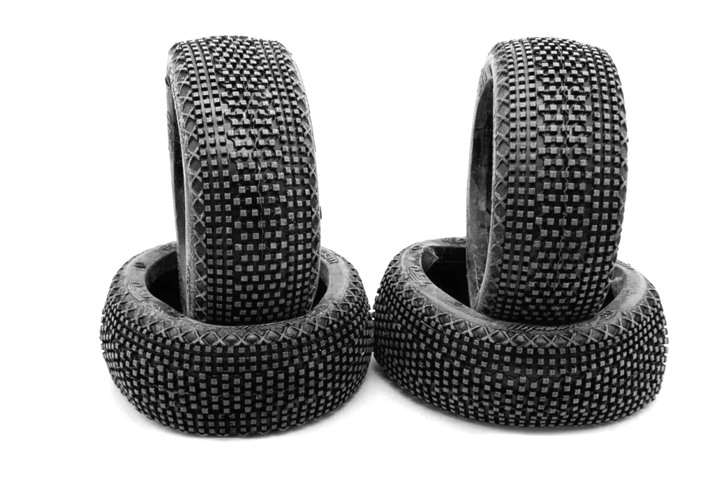 Naše pneumatiky TPRO jsou k dispozici ve 2 různých typech. Jednak jako nelepené pneumatiky v sadě po 4 kusech, nebo jako hotové lepené pneumatiky v páru po 2 kusech. U lepených kol se používá naše modrá vložka TPRO ve střední barvě (TP1309I3) a bílé disky v měkké verzi (TP100011SWH).
