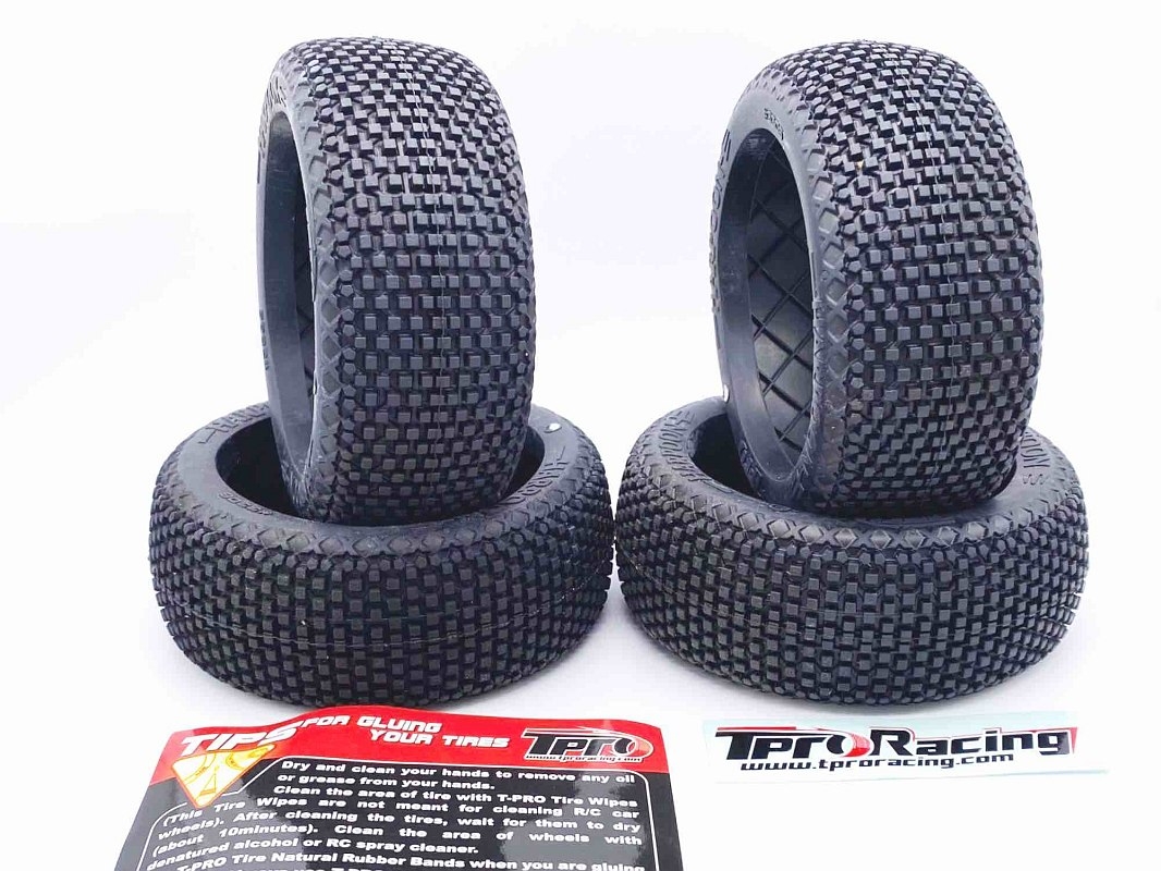 Naše pneumatiky TPRO jsou k dispozici ve 2 různých typech. Jednak jako nelepené pneumatiky v sadě po 4 kusech, nebo jako hotové lepené pneumatiky v páru po 2 kusech. U lepených kol se používá naše modrá vložka TPRO ve střední barvě (TP1309I3) a bílé disky v měkké verzi (TP100011SWH).