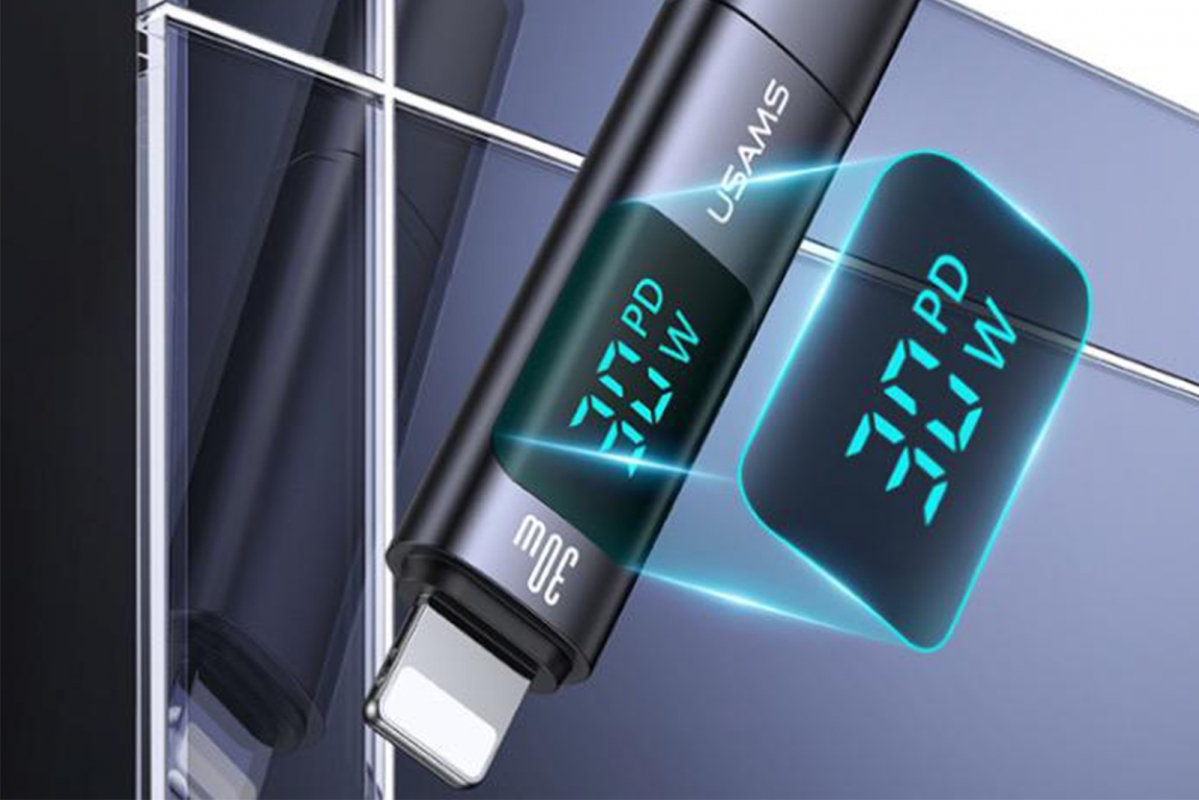 USAMS AU18 Lightning - adaptér typu C s digitálním displejem 30W - šedý