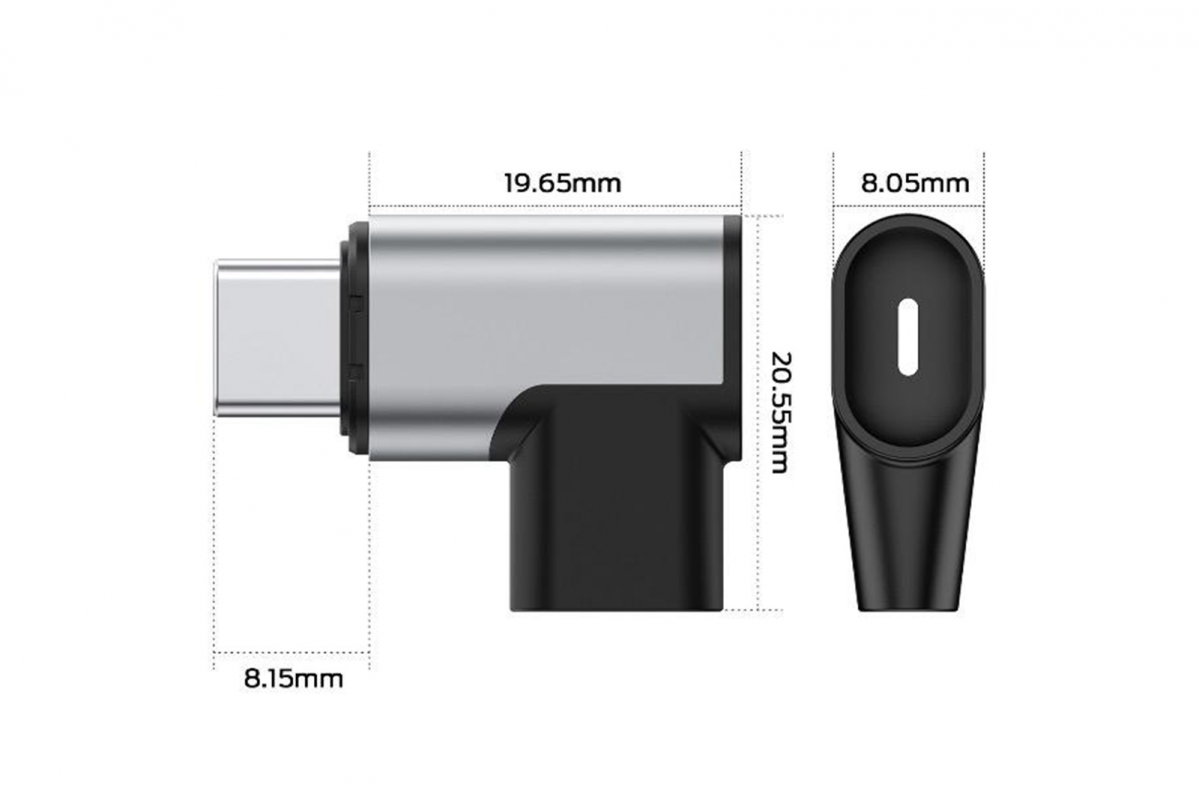 USB-C 3.1 magnetický nabíjecí adaptér pro smartphony a tablety. Velikost: 27,8 x 20,55 x 8,05 mm. Výstup: 5V 3A; 20V 5A; maximálně 100W. Podporuje video 4K @ 60Hz a přenos dat 40Gbps. Kompatibilní se smartphony, tablety a sluchátky.