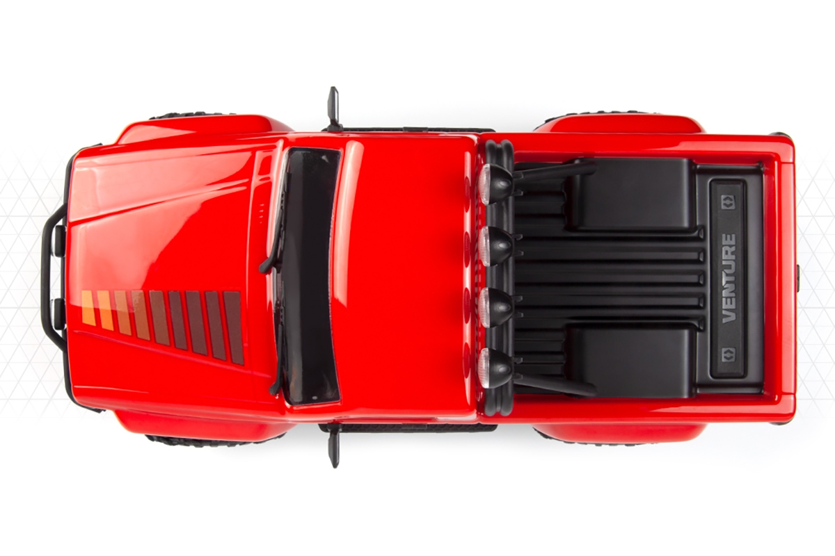 Karoserie je předlakovaná a obsahuje také čirá okna a maketové doplňky, jako jsou znaky Toyota, přední mřížka, kliky dveří, stěrače, funkční zrcátka, a navíc trubkové nárazníky a ochranná klec pro vysokou úroveň realismu. Namontovaná sada LED světel ještě více zvyšuje autenticitu a dodává modelu Venture18 další vrstvu detailů, která skutečně vynikne. Světla lze navíc ovládat přímo z vysílače.