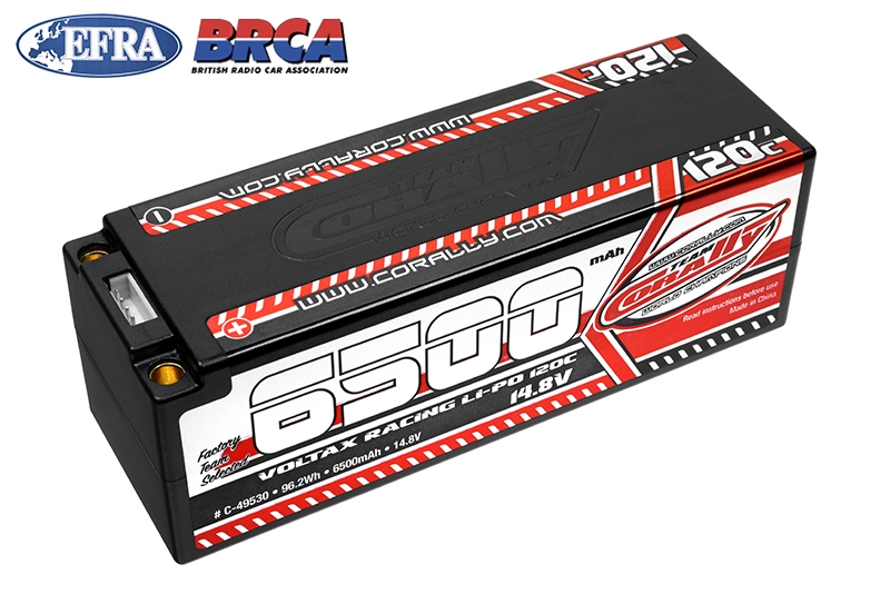 Team Corally VOLTAX HiVolt verze pro opravdové závodníky s kapacitou 6500mAh v Stick Hardcase verzi. Rozměry: 138x47x48mm, nabíjecí proud max. 3C/19,5Amp., G5 napájecí konektor, XH-4S balanční konektor, Váha: 549-595g