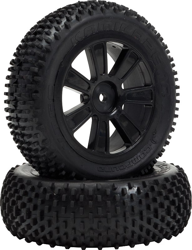 VTEC Kamikaze 4WD přední, nalepené gumy na černých diskách - 1/10 Buggy J-směs