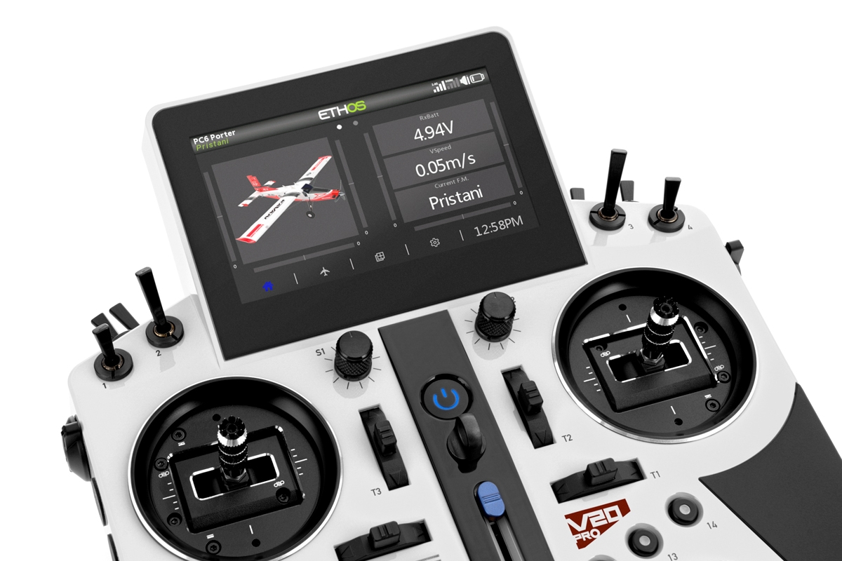 V20 Pro je vhodná pro pokročilé i sportovní piloty. Výtečně poslouží pro řízení nejrůznějších modelů letadel nebo heli/multikoptér. Snadno jej nastavíte například i pro lodě nebo pozemní modely. K tomu použijete širokou řadu funkcí a mixů dostupných v operačním systému ETHOS™. Ty pohodlně upravíte dle vlastních preferencí na velkém dotykovém barevném displeji s vysokým jasem.