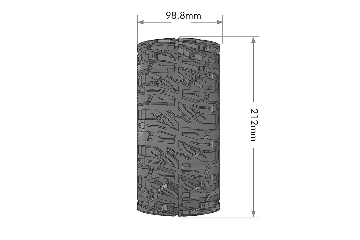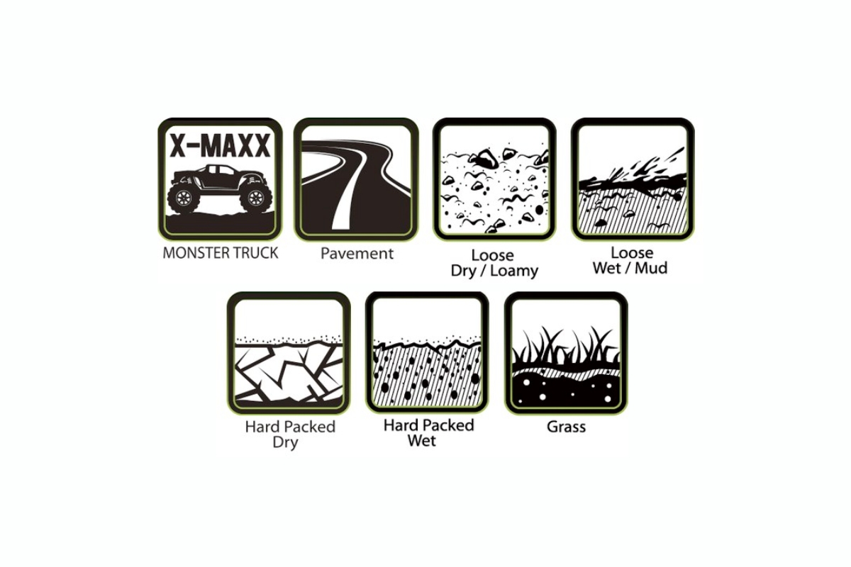 Kompletní kola pro monster truck 1/5. Pneumatiky vhodné do sucha i do mokra, pro všechny povrchy. Disky pro Traxxas X-Maxx.