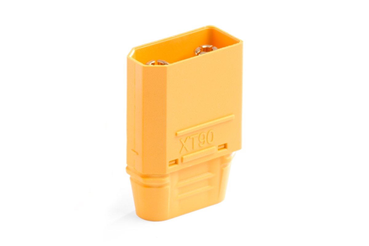 Dvoukolíkový silový konektor se zlacenými kontakty se zatížitelností max. 90 A. Pro kabely o průřezu max. 5,3 mm2 (10AWG). Přechodový odpor 0,30 mOhm, max. 500 V. Balení 1 pár.