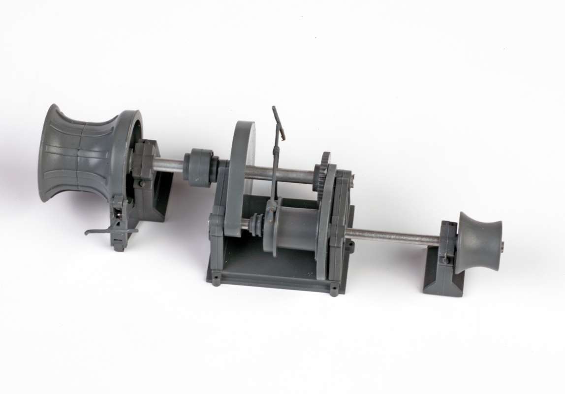 Nefunkční maketa kotevního a záchranného navijáku. Rozměry: 123x43x35mm.