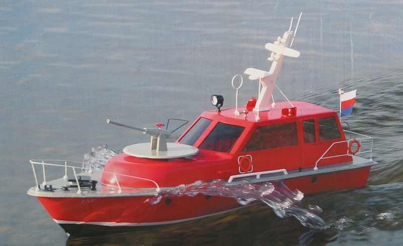 Opticky velmi atraktivní model hasičského RC člunu délky 520 mm.