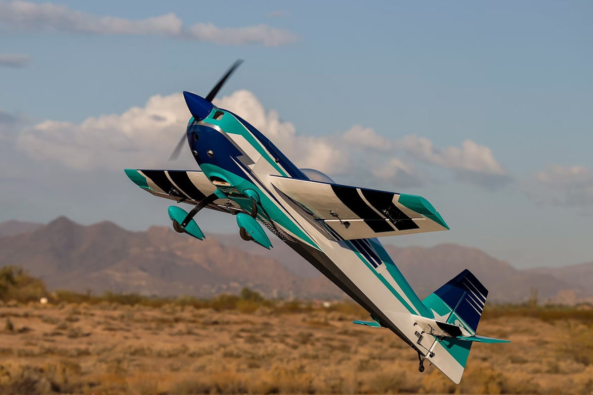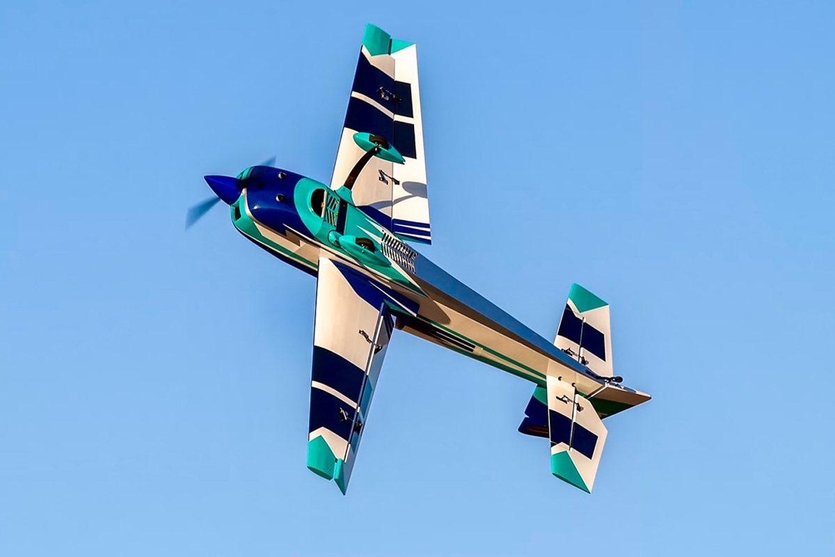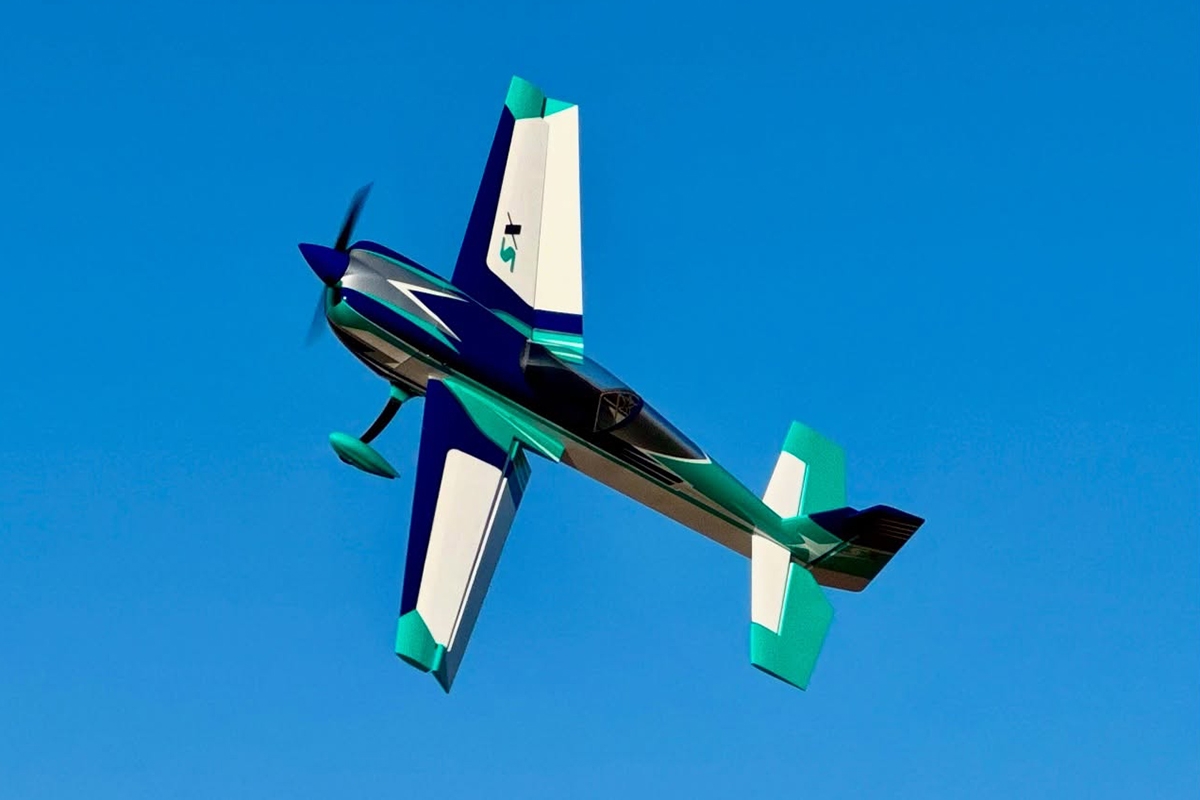 Sportovní polomaketa akrobatického letadla pro pohon benzínovým motorem 100-130 ccm pro zkušené piloty pro létání klasické přesné i extrémní 3D akrobacie.