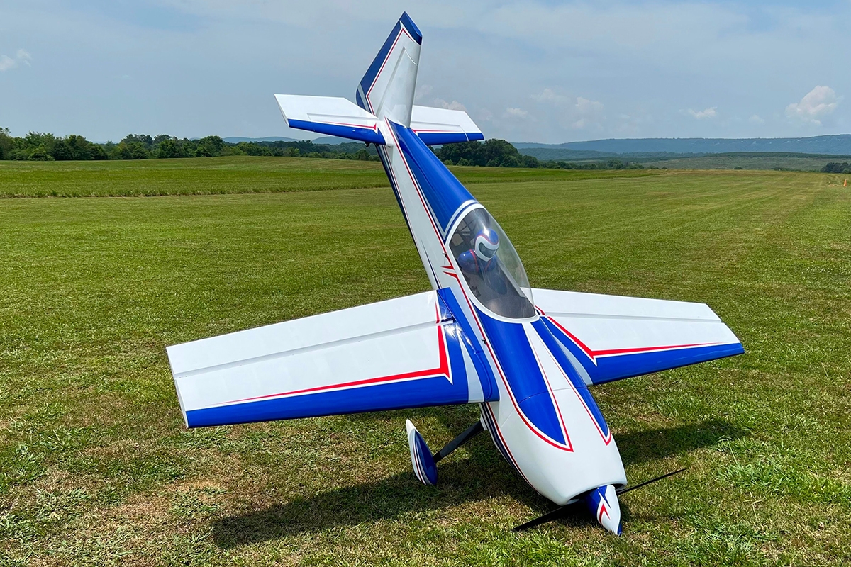 Sportovní polomaketa německého akrobatického letadla pro pohon benzínovým motorem 85-130 ccm pro zkušené piloty pro létání klasické přesné i extrémní 3D akrobacie.