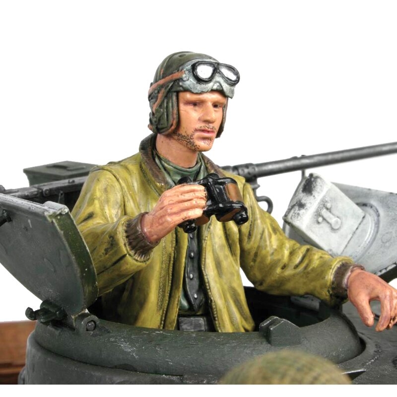 Vyrobeno ze speciálně vyvinutého materiálu na bázi silikonu, ručně malované, každá postava je jedinečná. Veliteli tanku M4A3 pomáhali řidič, radista, nabíječ a střelec.