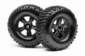 Plastové černé disky s nalepenými on-road pneumatikami se vzorkem.