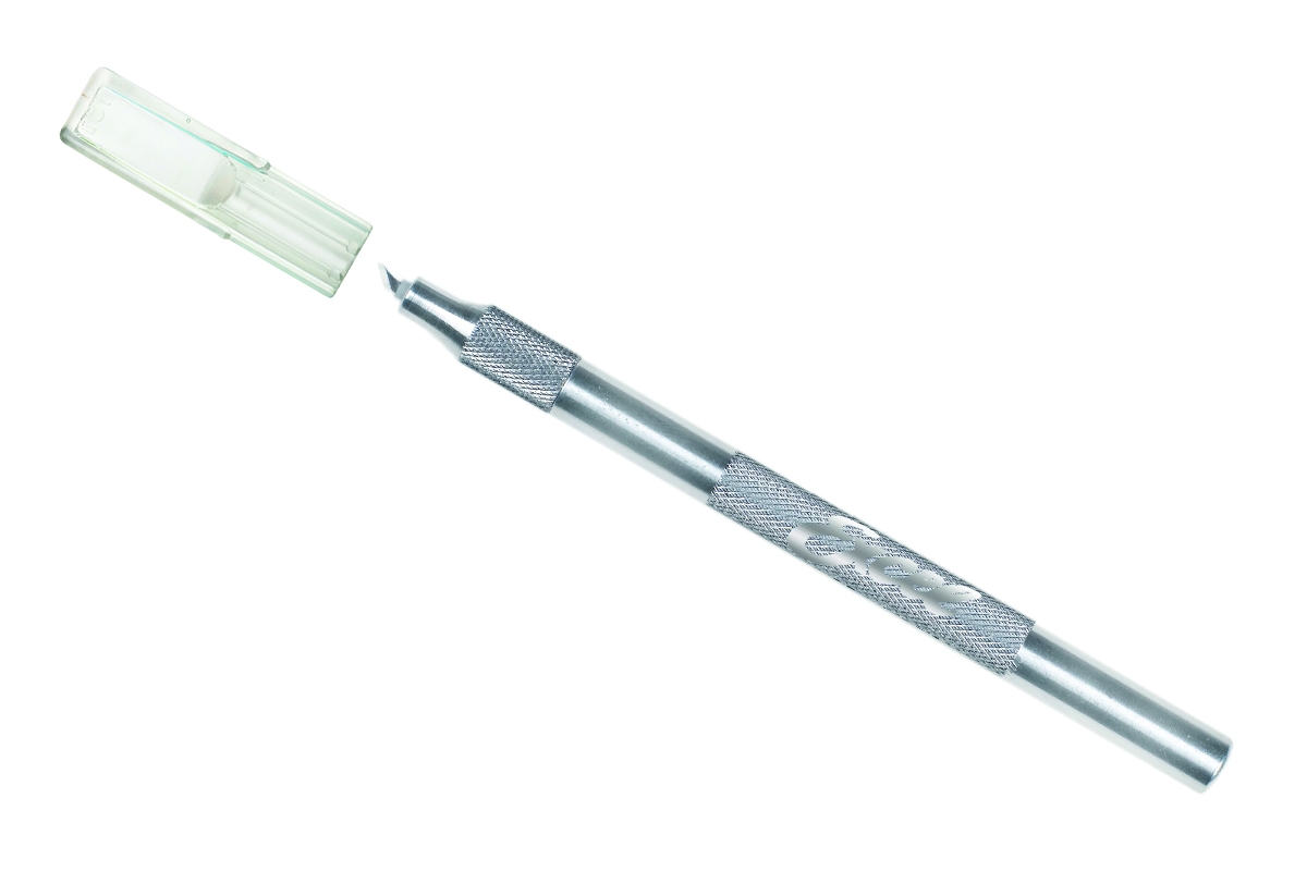 Nůž s otočnou čepelí 360° s hliníkovou rukojetí a ochrannou krytkou. Náhradní čepele #64 katalogové číslo 5NA00135, typ 20064.