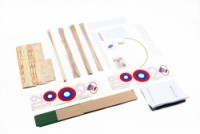Stavebnice obsahuje: balsové laserem vyřezávané díly, balsové nosníky, vakuově lisované díly (kryt motoru, kola...), čirou plastovou fólii na větrný štítek, ocelovou strunu na podvozek a další drobné díly, barevný potahový papír, aršík samolepek, stavební plán.
