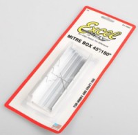 Hliníklový kosořez EXCEL s úhlem řezu 45°, 90° a 135°. Pro pilky s listem šířky 21 mm a více. Délka 150mm, řezná šířka 39mm, řezná hloubka 20,5 mm. Nepostradatelný pro přesné řezání lišt a nosníků. Ideální pro žiletkovou pilku 30490 (5NA00650).