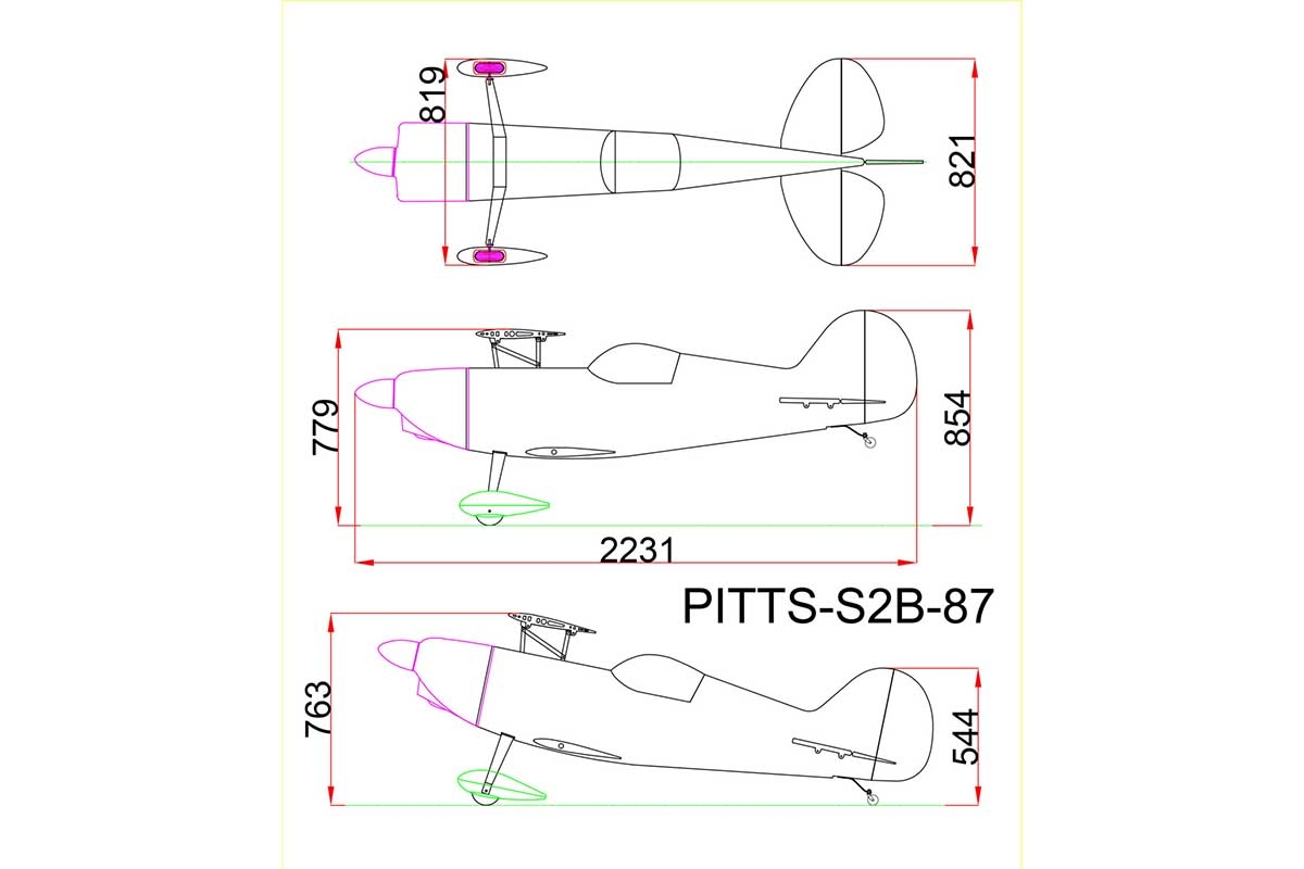 87" Pitts S2B Žlutý Bulldog (2,2m)
