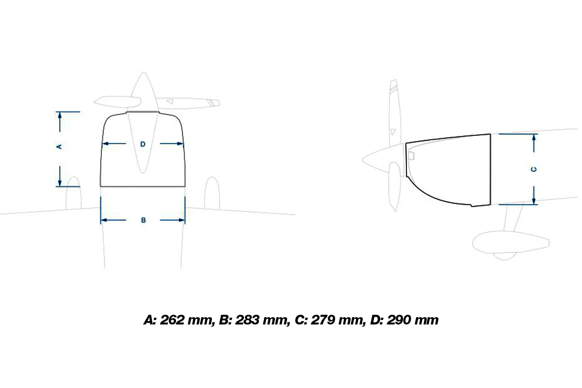 spodní část motorového krytu z čirého plastu - umožňuje pohodlné vyměření otvorů pro výfuk a překlesnení na laminátový kryt motoru