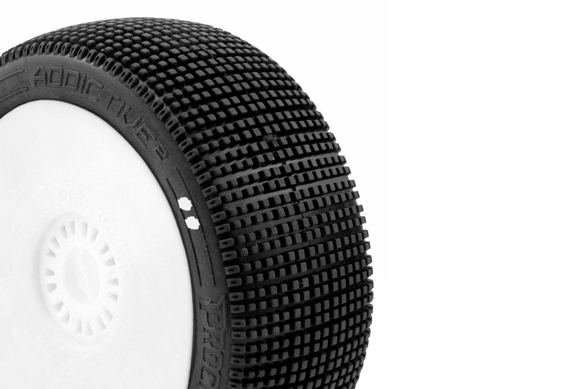 ADDICTIVE V2 BUGGY S1 (SUPER SOFT) nalepené pneumatiky, bílé disky, 2 ks.
