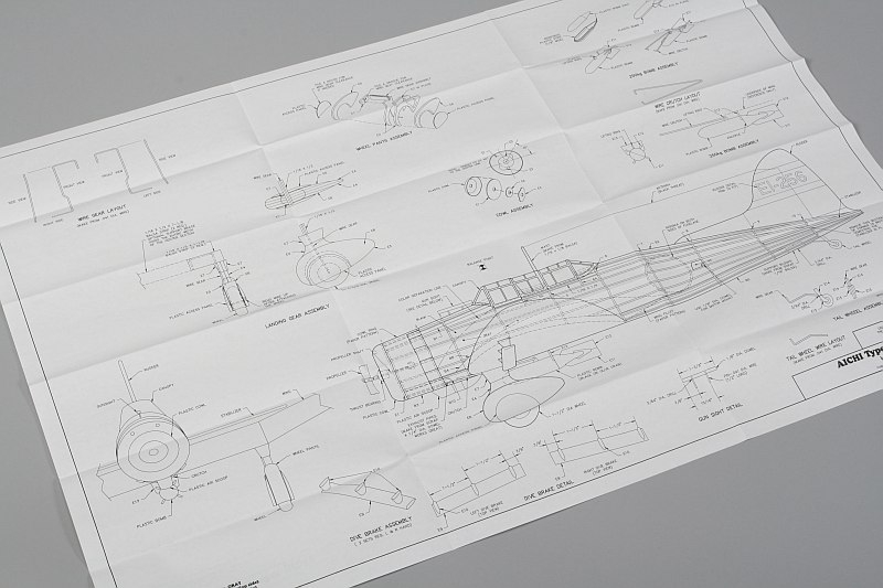 Stavebnice volně létající polomakety japonského palubního střemhlavého bombardéru určená pro pohon gumovým svazkem. Model je klasické celobalsové konstrukce v rozsypu s laserem vyřezávanými dřevěnými díly, maketovými doplňky z vakuově tvářeného plastu a plastovými díly zhotovenými vstřikovým lisováním. Trup je konstruován pravou minimaketářskou technologií s přepážkami a velkým množstvím podélníků, které umožňují věrně reprodukovat oblé tvary moderních strojů. Staví ve dvou krocích - díky "rozříznutí" ve svislé rovině postavíte přímo na pracovní desce nejprve jednu polovinu trupu, a k ní poté "dolepíte" polovinu druhou. Tak je zajištěno, že i trup komplikovaných tvarů postavíte rovný a souměrný, bez potřeby jakýchkoliv speciálních přípravků. Křídlo je klasické konstrukce z nosníků a žeber, ocasní plochy z balsových lišt a laserem vyřezávaných dílů.