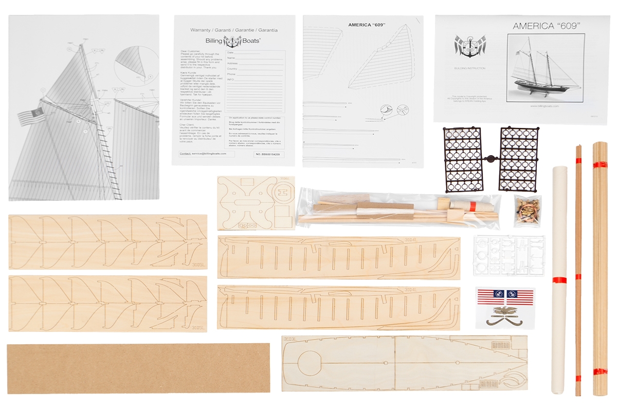 V roce 1850 na výzvu Newyorského plachetního klubu proslulý lodní stavitel George Steers narýsoval plány nové velmi rychlé lodi. 22. srpna 1851 se dvoustěžňový škuner America na pozvání britské Královské eskadry jachet zúčastnil závodu Hundred Guinea Cup okolo ostrova Isle of Wight u jižního pobřeží Anglie. V konkurenci 14 britských plavidel snadno zvítězil; o tři dny později palubu lodi poctila svojí návštěvou sama královna Viktoria. America se vrátila s velkou slávou domů a vyhranou trofej (mořskými vlky láskyplně přezdívanou „Auld Mug“ – „Starej hrnek“) věnovala Newyorskému plachetnímu klubu. Pohár od té doby nese jméno America’s Cup a soutěží se o něj dodnes, což z něj dělá nejstarší sportovní trofej světa. America se poté zúčastnila dalších 50 závodů, sloužila jako cvičná loď námořní akademie v Newportu, ve 20. století potom chátrala v různých přístavech. Ačkoliv se president Roosevelt pokoušel v roce 1940 přesvědčit Kongres ke schválení prostředků na záchranu lodi a její umístění do Národního námořního muzea, doba měla jiné priority. Při sněhové bouři v roce 1942 America vzala za své – ze zachráněných kusů dřeva byl postaven model lodi, který najdete v muzeu Námořní akademie v Annapolisu. V posledních 50 letech byly postaveny tři repliky škuneru - dvě v USA - ale třetí (pokřtěná Skythia) má domovský přístav v německém Rostocku a slouží jako komerční výletní plavidlo. America je určena pro mírně pokročilé lodní stavitele; je konstruována jako neplovoucí stolní maketa.