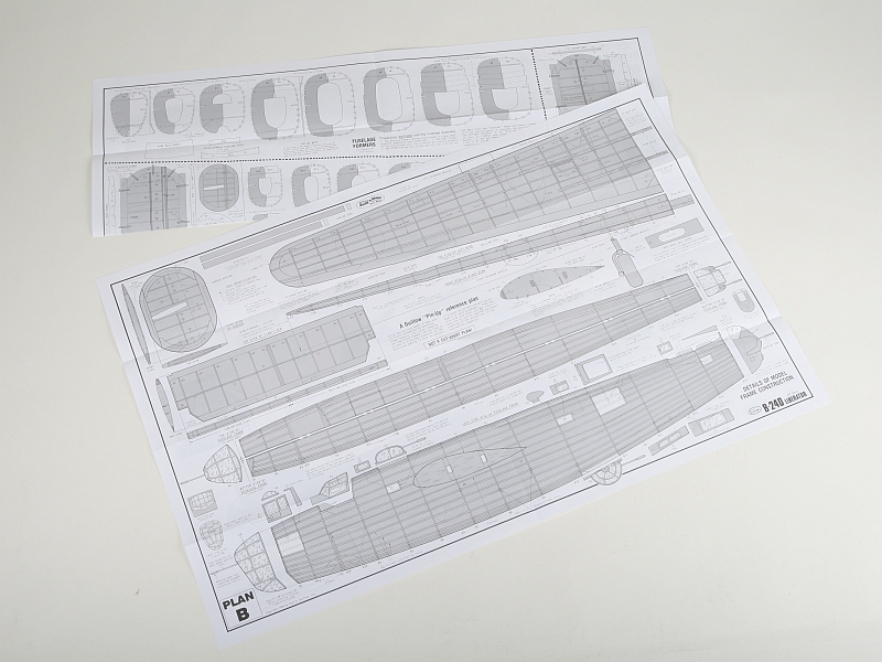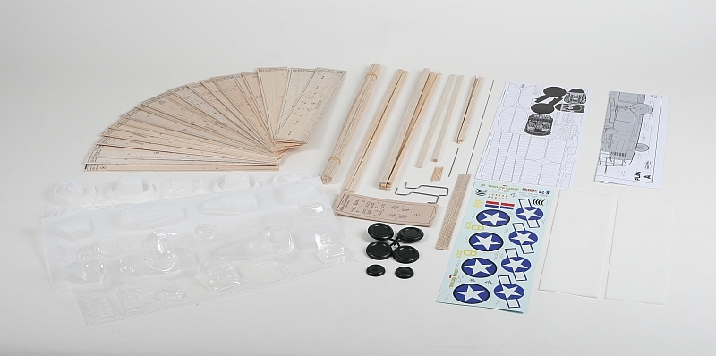Stavebnice obsahuje: balsové předseknuté díly, balsové nosníky, vakuově lisované maketové díly (kryt motorů, motory...), čiré acetátové výlisky pilotní kabiny a příďového "skleníku", plastová kola, ocelovou strunu na podvozek a další drobné díly, potahový papír, aršík mokrých obtisků, stavební plán.